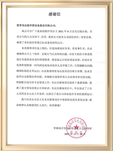 青達(dá)環(huán)保每年能為800多個國內(nèi)外用戶提供10000多次現(xiàn)場服務(wù),電話及郵件等形式的技術(shù)咨詢服務(wù)達(dá)數(shù)萬余次,為全球客戶的設(shè)備安全生產(chǎn)保駕護(hù)航,獲得大量高度評價,為維護(hù)與客戶良好的合作關(guān)系堅定基礎(chǔ),鞏固和強(qiáng)化用戶忠誠度,并是指具有可持續(xù)性,打造一流服務(wù)品牌。